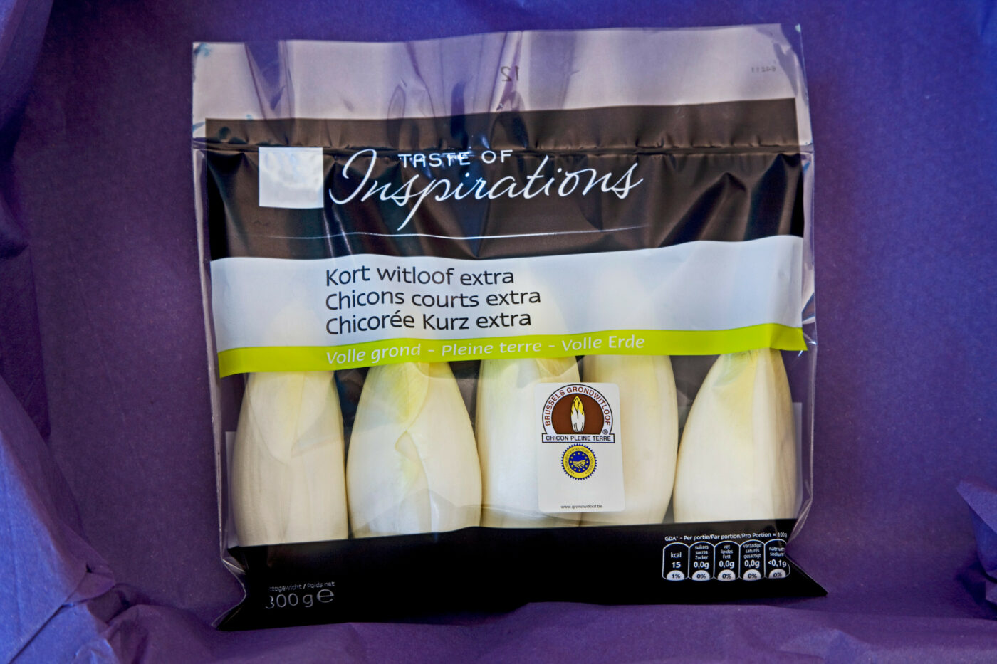 “Hoe de groente precies ontstaan is, is niet helemaal zeker, maar een van de mooiste verhalen is dat van een Brusselse landbouwer die begin achttiende eeuw in zijn kelder chicoreiwortels met een laag aarde bedekte om ze voor de belastingsdienst te verbergen. Het gevolg was dat op de wortels een witte krop groeide, die naar meer smaakte. Ziedaar de geboorte van het grondwitloof.”