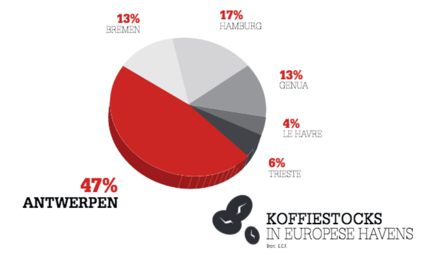 De haven van Antwerpen is de belangrijkste koffieopslagplaats ter wereld. Zo stockeert de haven 250.000 ton ruwe koffie, goed voor 27 miljard kopjes koffie. Ook wat de tewerkstelling betreft, is de haven van Antwerpen met in totaal bijna 62.000 werknemers, de belangrijkste Vlaamse zeehaven. (2014)