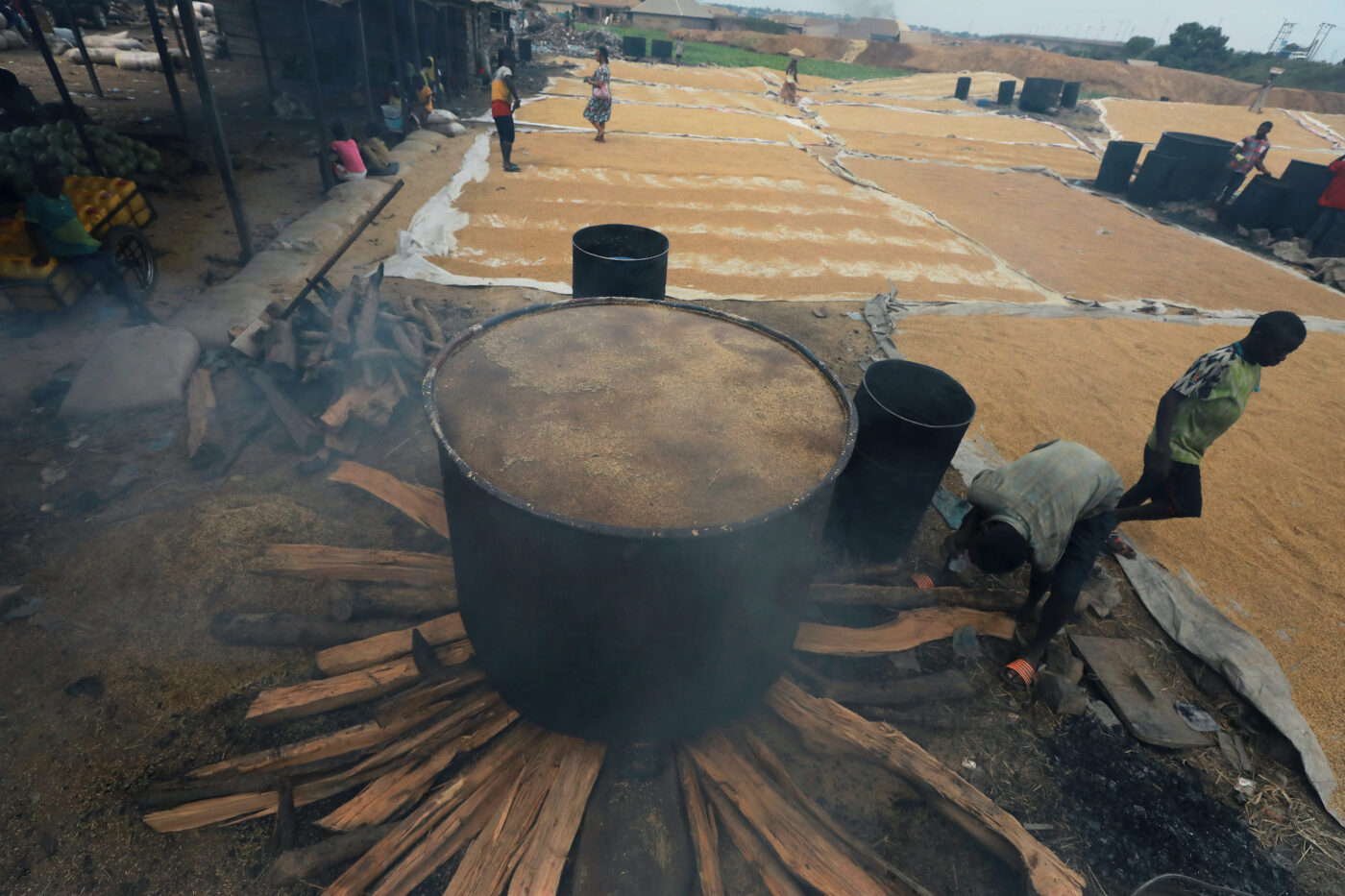 Na de oogst wordt de rijpe rijst gedroogd om rotten te vermijden. Dat gebeurt op droogvloeren die worden verhit of op matten die bij regen kunnen worden opgerold en binnengebracht. Het resultaat na oogst is paddy rice, die vervolgens door wrijving wordt ontdaan van zijn oppervlakkige buitenlagen tot een witte korrel wordt verkregen. Omdat die korrel weinig voedzaam is, is men in India en een aantal West-Afrikaanse landen overgegaan tot het maken van parboiled rice, waarbij door het stomen van de korrel de proteïnen van de buitenste lagen naar binnen worden gedrukt vooraleer ze worden schoongemaakt. Die rijst heeft een iets gelere kleur, en blijft bij het koken ook niet aan de pan plakken.
