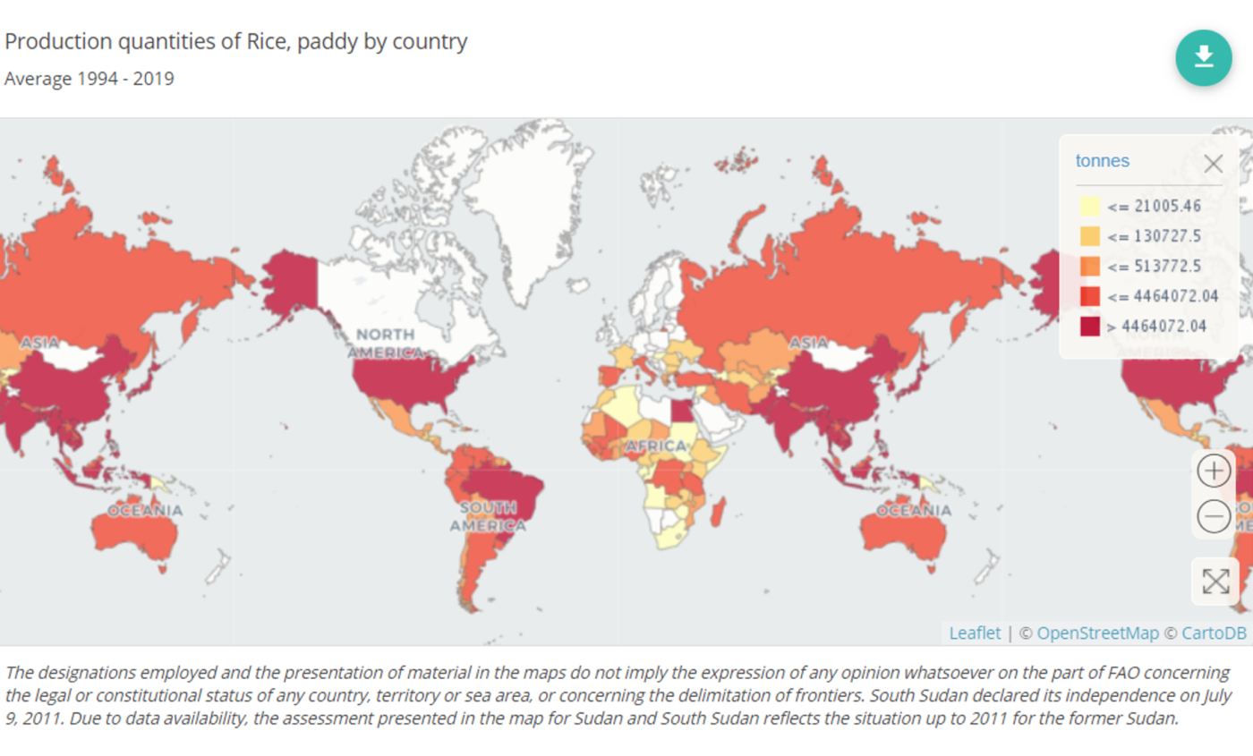 Met 600 miljoen geproduceerde ton per jaar behoort rijst tot de grote drie van het basisvoedsel, samen met tarwe en maïs. In tegenstelling tot die twee, wordt rijst echter slechts voor een klein deel verhandeld. De meeste rijst is voor eigen consumptie van de producent. Waar het gaat om het aantal geconsumeerde calorieën is rijst zelfs het belangrijkste voedsel: een vijfde van alle door mensen geconsumeerde calorieën ter wereld bestaat uit rijst.